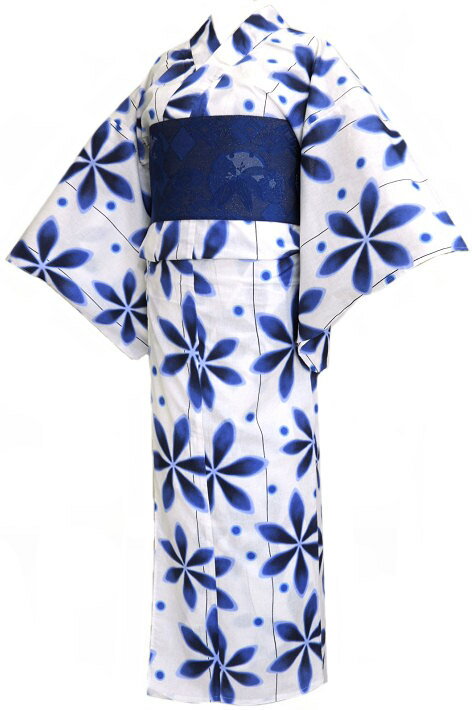 着物美人 送料無料 浴衣 2点セット 変り織り 女浴衣 浴衣女性 半幅帯紺 浴衣帯 帯付き 浴衣セット 木綿浴衣 木綿着物 街着 大人 女性用 M F L 155-165 【 白系 紺 雪花 】R443102