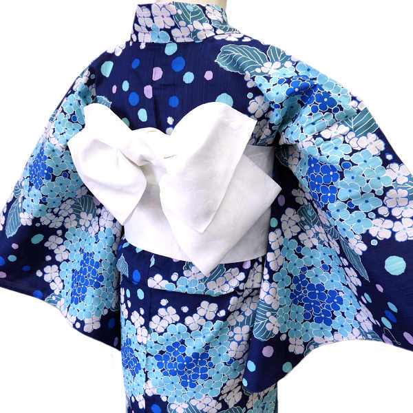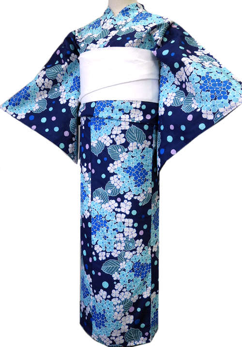 着物美人 送料無料 有村架純 ブランド浴衣 3点セット 変り織り 女浴衣 浴衣女性 半幅帯白 浴衣帯 下駄付き 浴衣セット 木綿浴衣 街着 大人 女性用 M F L 156-168 【 紺 紫陽花 】R449042-3