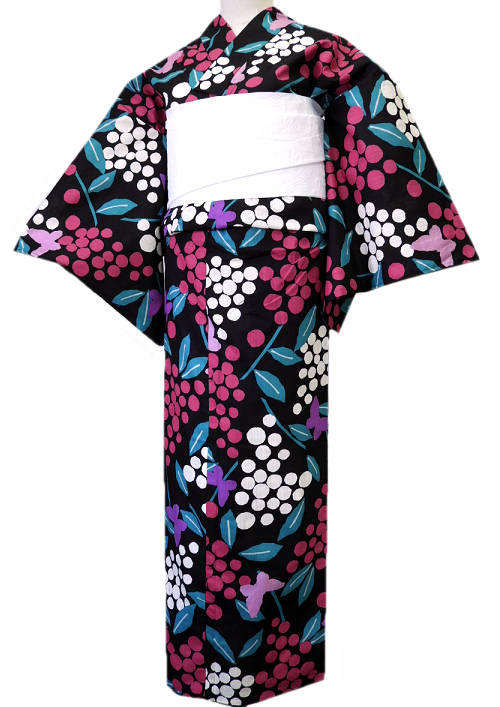 着物美人 送料無料 有村架純 ブランド浴衣 3点セット 変り織り 女浴衣 浴衣女性 半幅帯白 浴衣帯 下駄付き 浴衣セット 木綿浴衣 街着 大人 女性用 M F L 156-168 【 黒 南天 】R449046