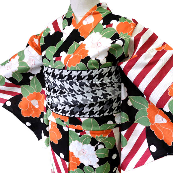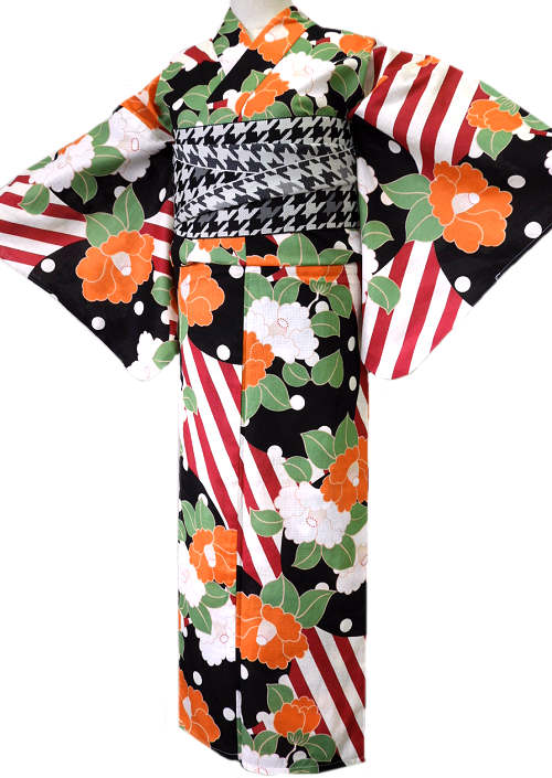 着物美人 送料無料 ブランド浴衣 3点セット 綿紅梅 変り織り 女浴衣 浴衣女性 半幅帯黒 浴衣帯 下駄付き 浴衣セット 大人 女性用 木綿浴衣 街着 M F L 156-168 【 レトロ椿 】R449136