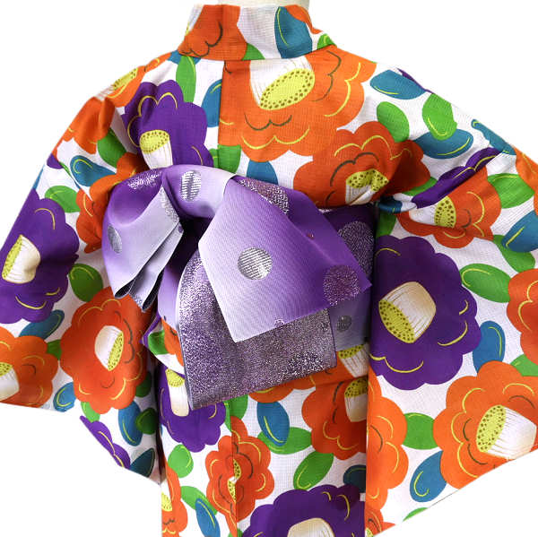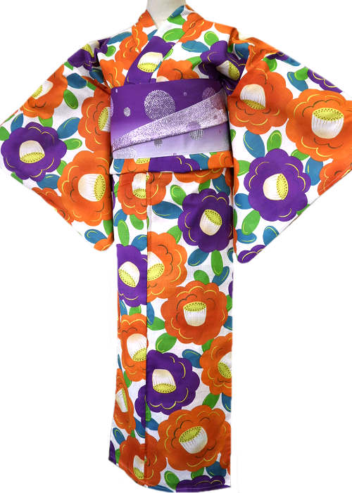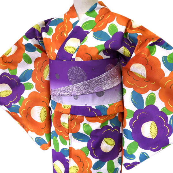 着物美人 送料無料 ブランド浴衣 3点セット 綿紅梅 変り織り 女浴衣 浴衣女性 半幅帯紫 浴衣帯 下駄付き 浴衣セット 木綿浴衣 街着 大人 女性用 M F L 156-168 【 白 レトロ椿 】R449138