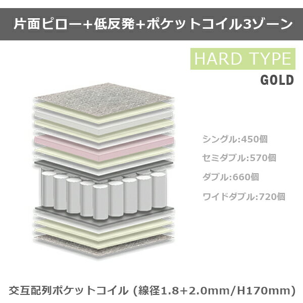 ) 材質 ■交互配列ポケットコイル(線径1.8+2.0mm/H170mm) 表面布:ニット生地/キルティング加工 ウレタンフォーム10mm ポリエステル3000g ウレタンフォーム20mm 不織布 低反発ウレタンフォーム50mm ウレタンフォーム10mm 不織布10g フェルト 交互式ポケットコイルH170mm エッジサポート・枠有り フェルト 不織布 ウレタンフォーム10mm ウレタンフォーム10mm 表面布:ニット生地/キルティング加工 カラー グレー サイズ 幅97×長さ195×厚み26cm その他 コイル数:450個 ポケットコイル 配達はすべて宅配便(一人)で玄関渡しとなります。