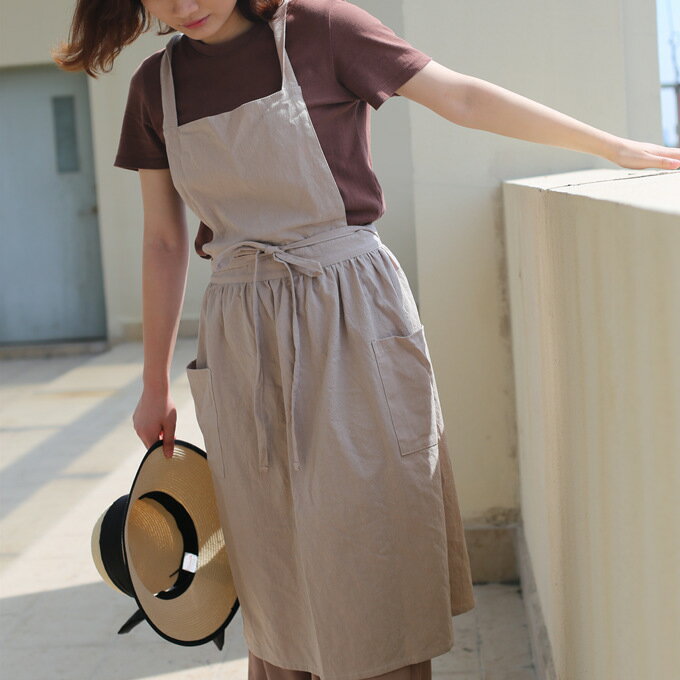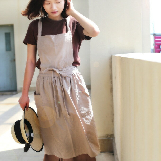 オシャレ リネンコットン エプロン リネン・コットンの天然素材 ナチュラル風合い。